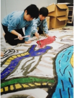 油絵制作は、描く子どもたち自身も非常にエネルギーを消費します。
