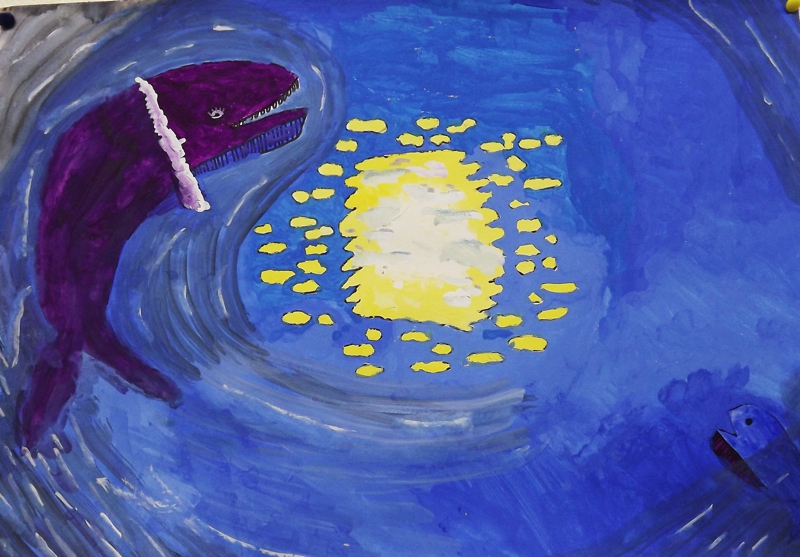 お話の絵『つきよのくじら』三ツ木彩香(小3)
