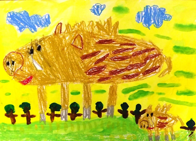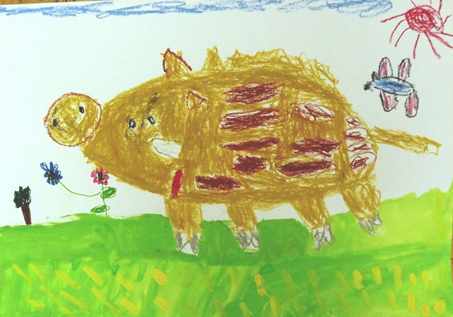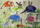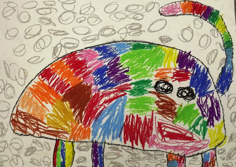 お話の絵『ぞうのエルマー』武田涼世(年長)