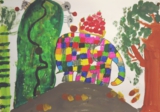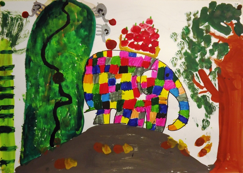 お話の絵『ぞうのエルマー』西田一葉(小3)