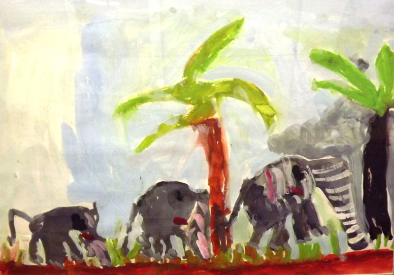 お話の絵『ぞうのエルマー』岸川夢桃(小4)