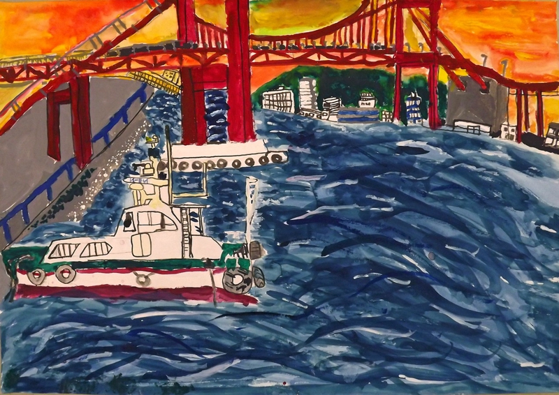 スケッチ「若戸大橋」 高須 勇成(小5)