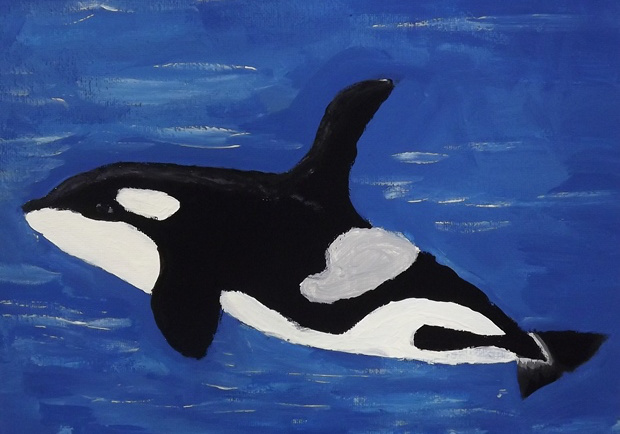 お話の絵『つきよのくじら』高須春伎(小3)