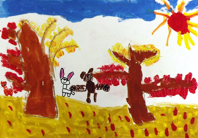 お話の絵『手ぶくろを買いに』市野日南子(小5)